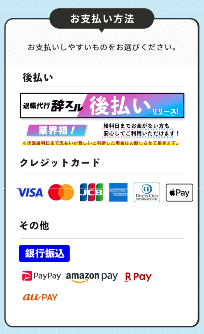 クレジットカード・銀行振込・コンビニ決済・paidy